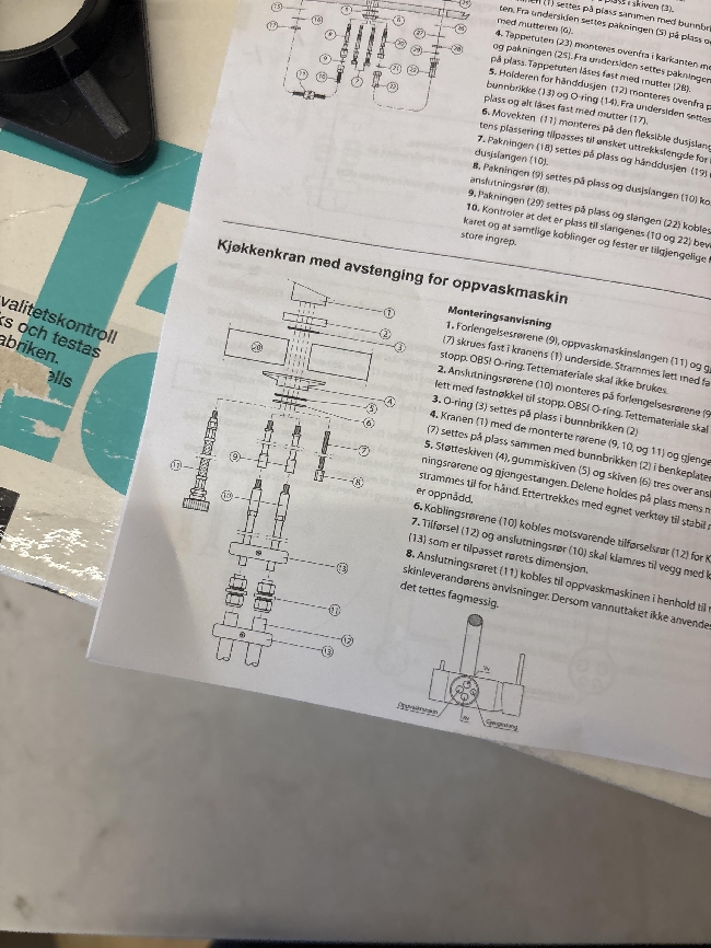 Montere tapwell blandebatteri til kjøkken. Mulig eksisterende ventiler må byttes da jeg hadde blandebatteri fra en annen leverandør.