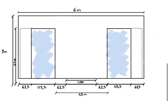 - Lettveggen skal være 6 m bred og 3 m høy.