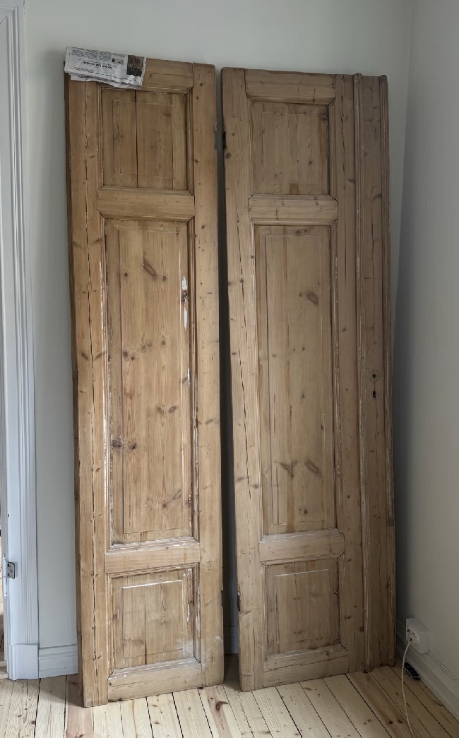 - Jeg har allerede skyvedørene (Bilde 3), men de må kappes og tilpasset slik at de blir identiske og tilpasses åpningen. Videre må de monteres med skyvedørssystem.