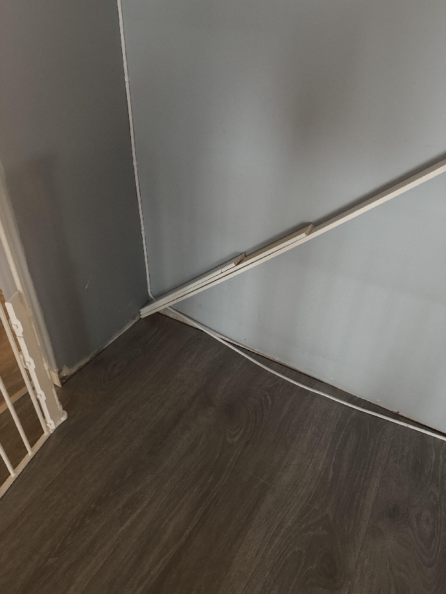 Trenger hjelp til å legge tre vegglister. Listen (og lim) har jeg, trenger kun hjelp til å kappe og legge den inntil da det krever gjærsag for å kappe i vinkel.