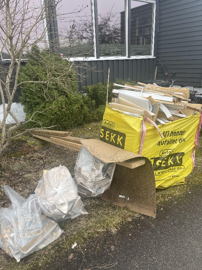 Planker og div søppel hentes, trengs muligens henger eller liten varebil